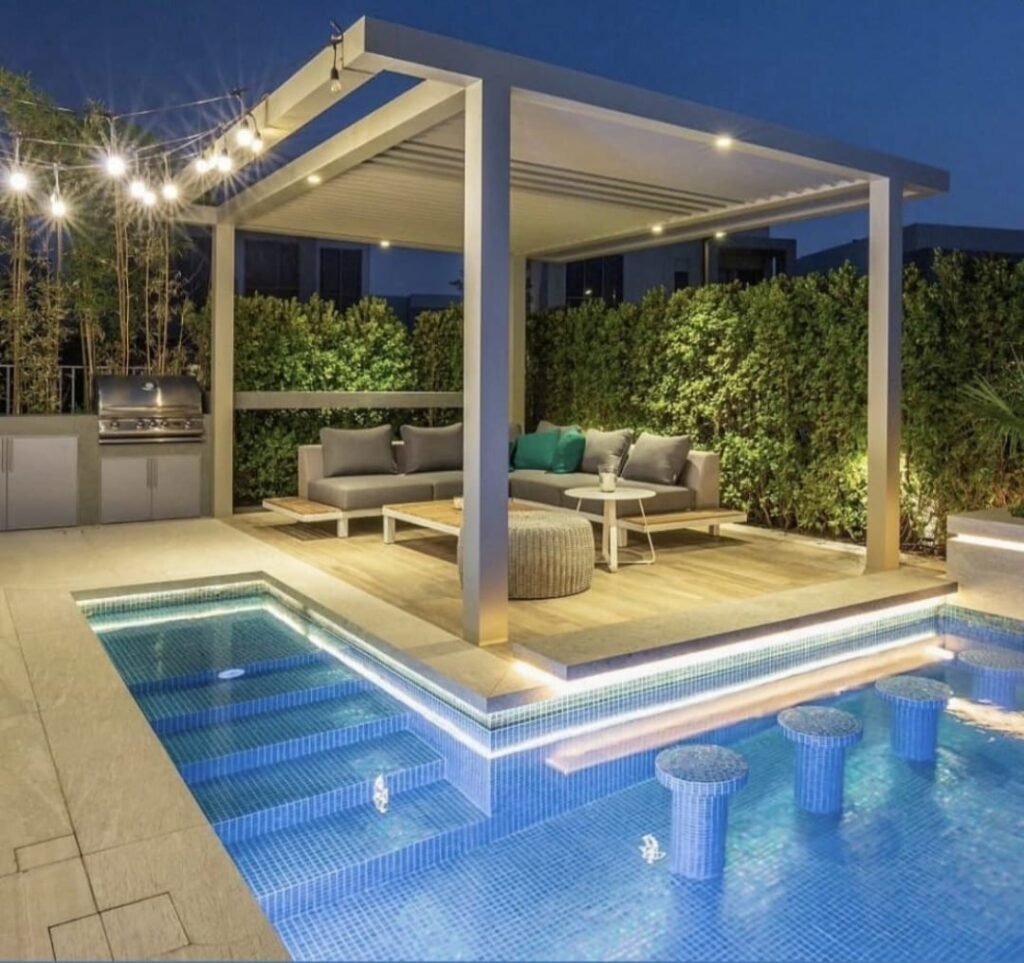 إضاءة LED مقاومة للماء تعطي مظهرًا فاخرًا للمسبح.